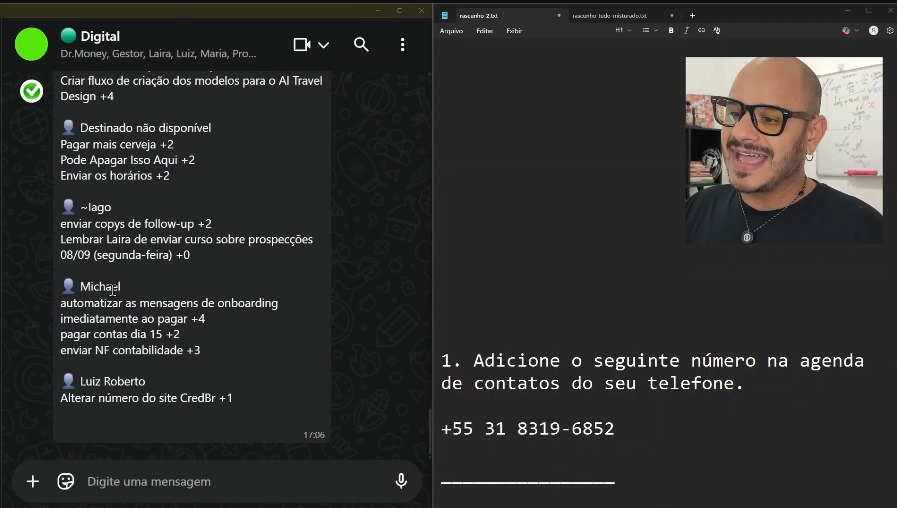De forma alguma. O Gestor AI foi criado justamente porque o WhatsApp já era a ferramenta de comunicação mais eficiente. Ele opera dentro do seu grupo de WhatsApp, transformando-o em uma ferramenta de gestão formal. Além disso, ele foi especificamente desenvolvido para permitir o trabalho assíncrono, superando desafios como grandes diferenças de fuso horário, que tornam impossível o trabalho sincronizado. Para completar, o bot envia relatórios automáticos duas vezes ao dia, mantendo a gestão informada sem exigir presença constante.