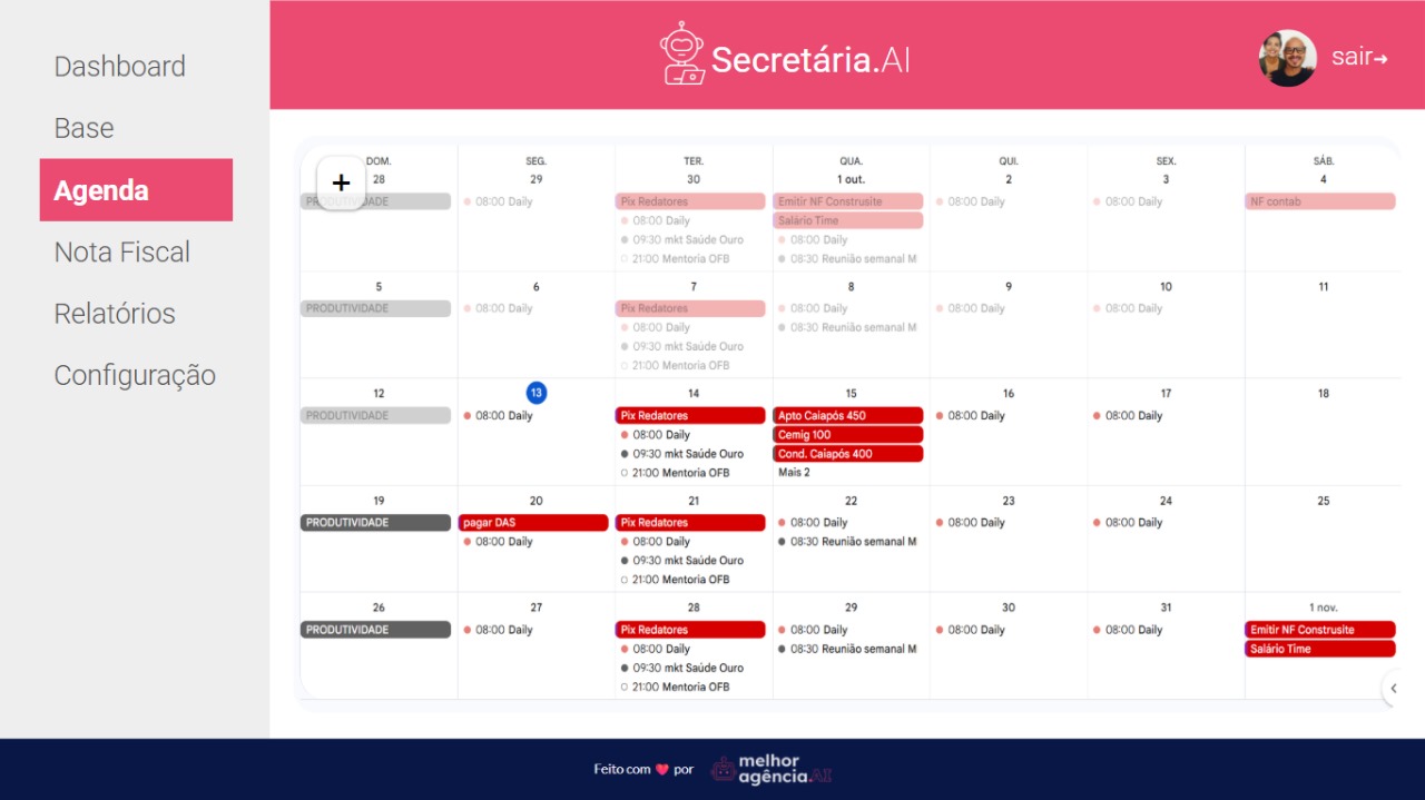 Se você tem um serviço de assinatura ou recorrência, ou simplesmente precisa manter a parte fiscal em dia, a Secretária AI cuida disso.